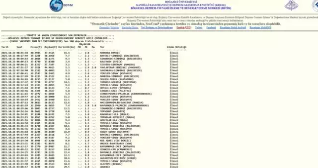 Boğaziçi Üniversitesi Kandilli Rasathanesi ve Afet ve Acil Durum Yönetimi Başkanlığı (AFAD), Türkiye genelindeki sismik hareketliliği kesintisiz olarak izlemekte ve meydana gelen depremlerle ilgili anlık bilgileri paylaşmaktadır.